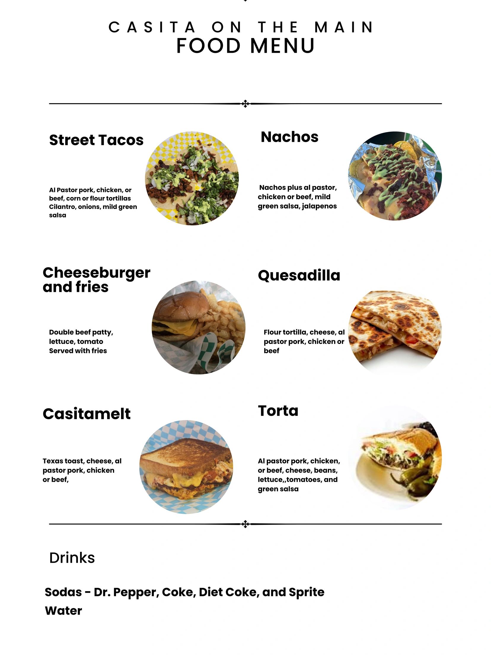 Choice of pork en salsa verde/roja, rajas and cheese, or chicken