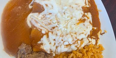 Choice of Green, Red or Chile con Carne Sauce, served with rice and beans